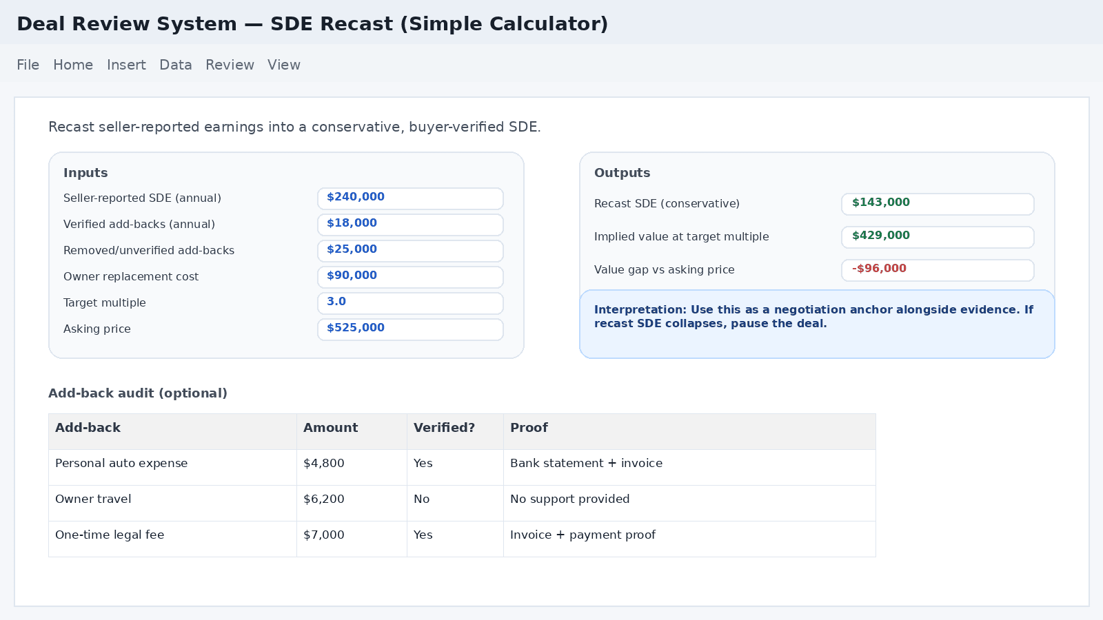 Broker numbers are marketing. Recast earnings using verified add-backs and owner costs to see the real cash flow.